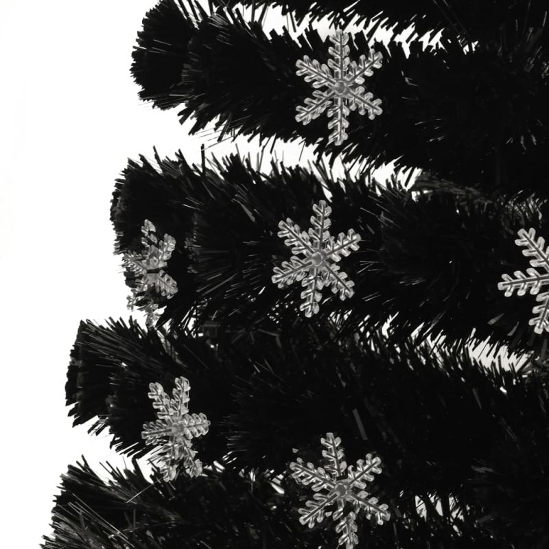 Коледна елха с LED снежинки, черна, 210 см, оптично влакно
