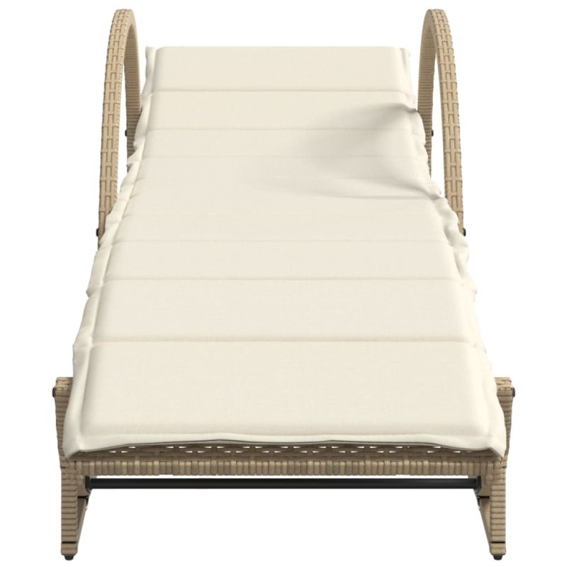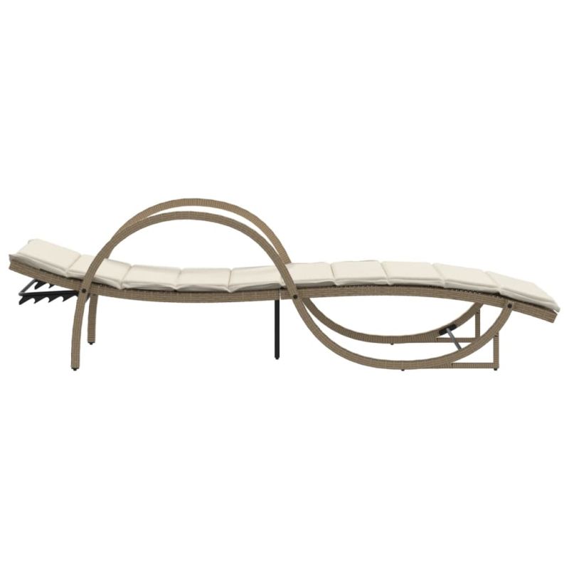 Шезлонги, 2 бр, с масичка, бежови, полиратан