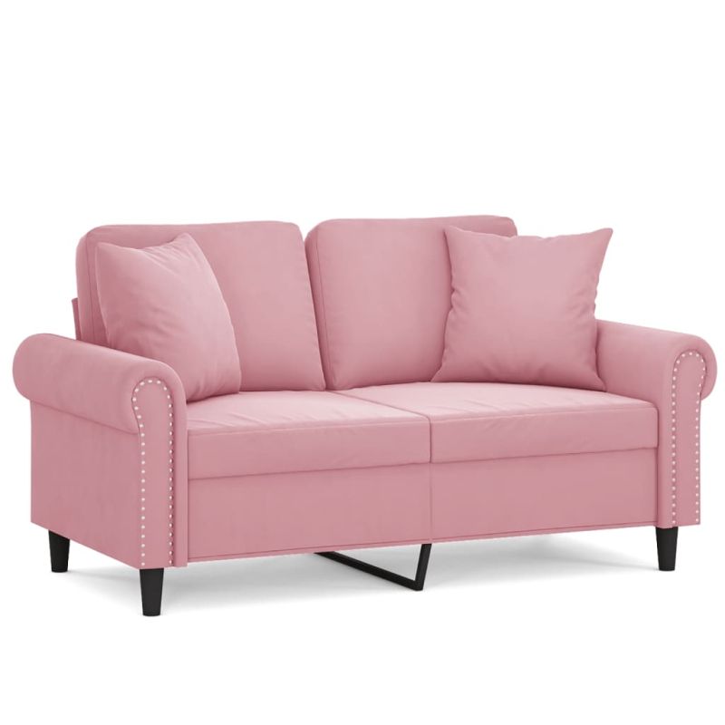 2-местен диван с декоративни възглавници розов 120 см кадифе