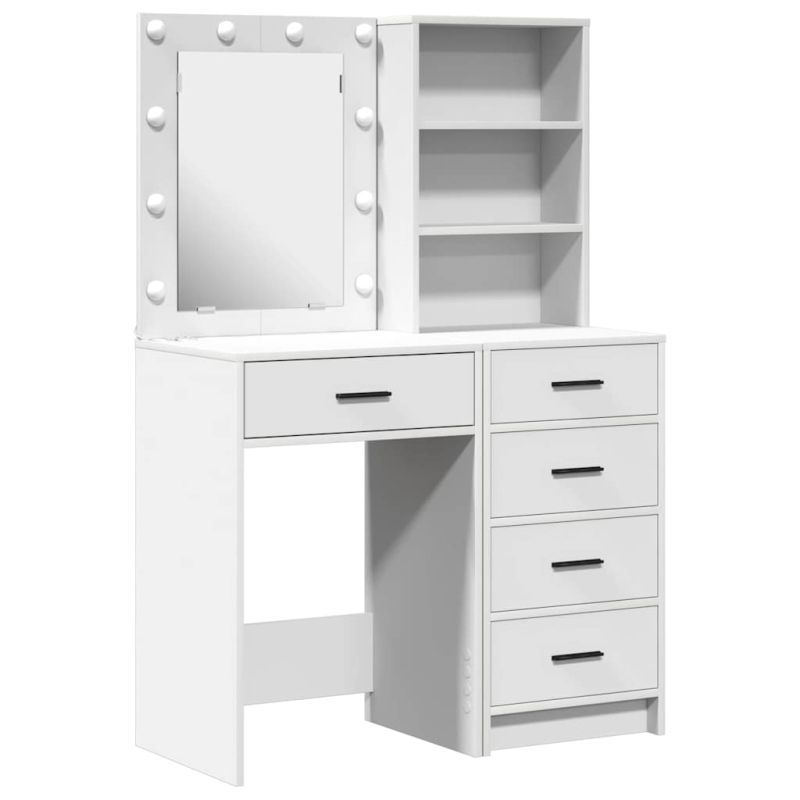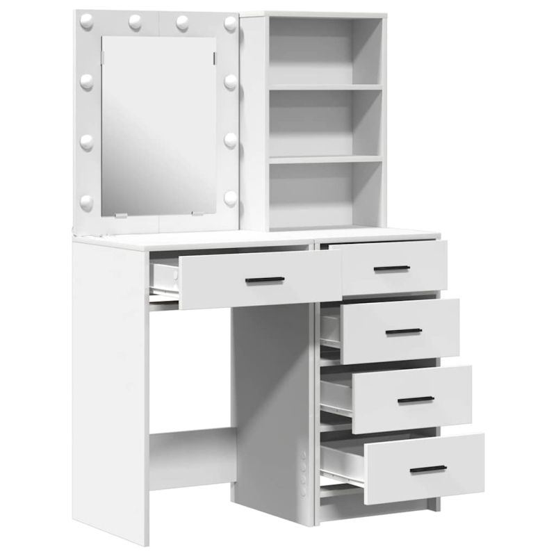 Тоалетка с чекмедже 2 pcs Бяло 50 x 41 x 135 см Инженерно дърво