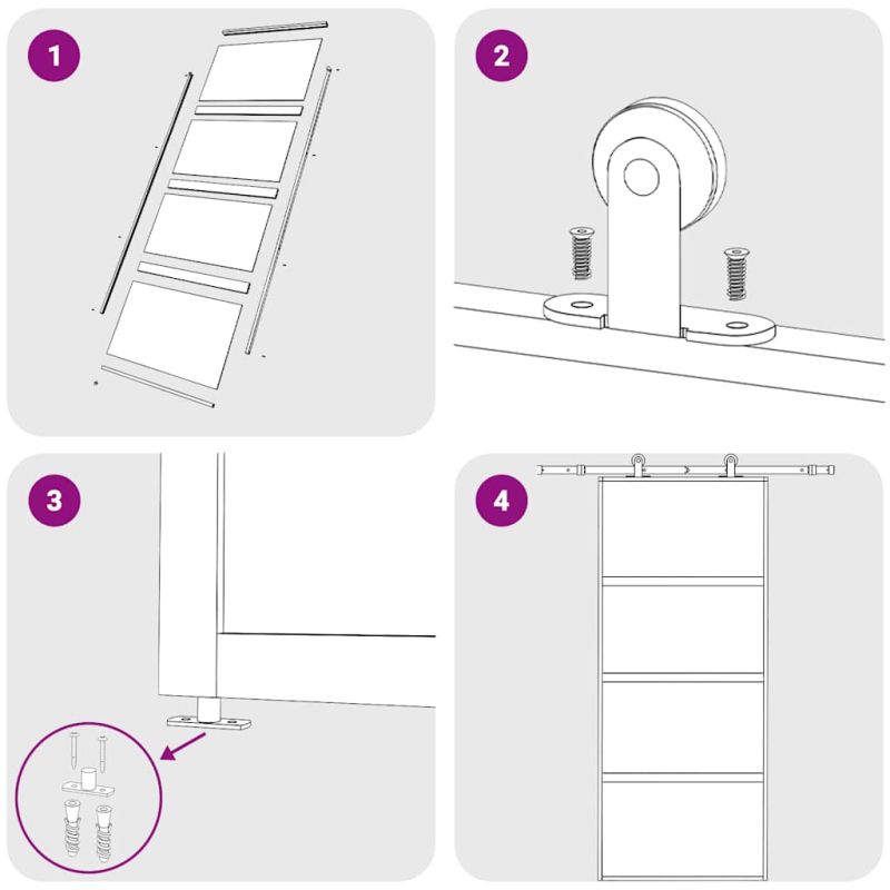 С тази плъзгаща се врата създавате елегантен преход от едно пространство към друго. Матирани стъклени панели: Тези матирани стъклени панели позволяват малко светлина да премине през тях, създавайки светла всекидневна зона, като същевременно осигуряват уединение.Здрава метална рамка: Тази плъзгаща се врата има алуминиева рамка за издръжливост и стабилност.Безопасно и тихо плъзгане: Благодарение на ограничителя, вътрешната плъзгаща се врата може да се отваря и затваря тихо чрез буферен механизъм.Тънък дизайн: Тънкият дизайн на рамката придава на плъзгащата се стъклена врата модерен и минималистичен вид. Добре е да се знае:Вратата може да се монтира само в комбинация с комплекти обков за плъзгащи се врати. Можете да намерите подходящите комплекти обков за плъзгащи се врати в нашия магазин.За начина на инсталиране можете да разгледате нашето ръководство за инсталиране на комплектите обков за врати и плъзгащи се врати. Не използвайте този артикул, ако някой от компонентите е счупен, скъсан или липсва.