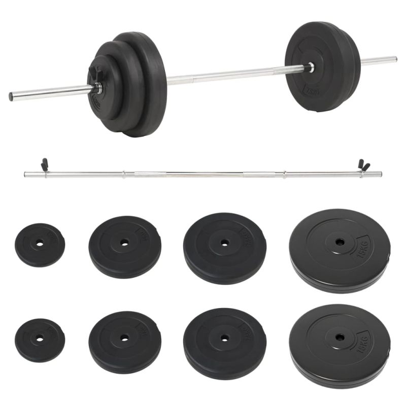 Този универсален комплект щанга с тежести е перфектен избор за онези, които търсят разнообразни възможности за тренировка. Издръжлив материал: Изработена от хромирана стомана, щангата със сигурност е здрава и стабилна. Освен това плочата на щангата е изработена от цимент и покрита със здрава, безопасна за пода пластмаса. Това ви позволява да не усещате досадни тракащи звуци на тежестите.Комплект от различни тежести: Лесно се прави подходяща комбинация с 4 различни тежести: 2 x 15 кг, 2 x 5 кг, 2 x 7,5 кг, 2 x 1,25 кг. Различните комплекти тежести винаги могат да посрещнат различните ви тренировъчни нужди.Ясно щамповано тегло: Теглото е ясно щамповано върху всеки диск с тежести за бързо и лесно идентифициране.Мултифункционален дъмбел: Мултифункционалният комплект щанги е подходящ за тренировка на мускулите на гърдите, бицепсите, ръцете, трицепсите и гърба.Практично звездообразно заключване: Звездообразните ключалки гарантират, че тежестите остават здраво на място. Забележка:Всеки продукт се доставя с ръководство за сглобяване в кашона за лесно сглобяване.