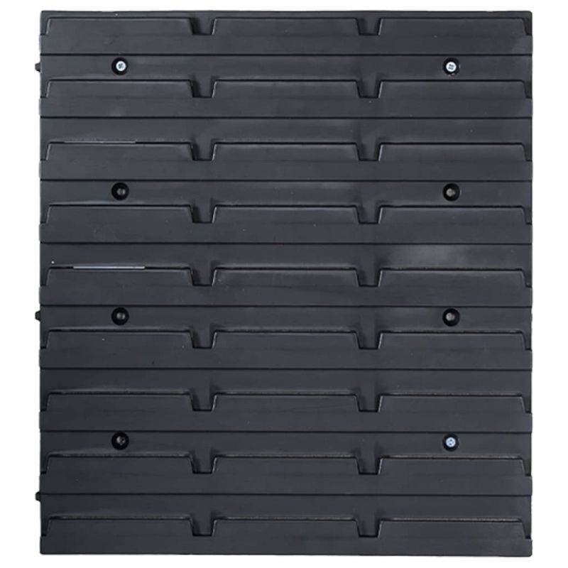 Поддържайте вашите гараж, стая за занаятчийство или работилница организирани с този комплект панели за монтаж към стена и контейнери за съхранение. Практичната полица със стифиращи кутии предлага много възможности за съхранение на дребни предмети, като винтове, пирони, гайки, гнезда, фитинги и пр. 6-те солидни панела за стена съдържат 90 кутии, на които можете да поставите етикети за по-лесен достъп до всички малки части. Можете да изваждате контейнерите за съхранение поотделно и да ги нареждате един в друг. Комплектът може да се разширява и се монтира лесно към стената на гаража или бараката. Този комплект контейнери за съхранение може се подреди така, че да отговаря на всичките ви нужди.