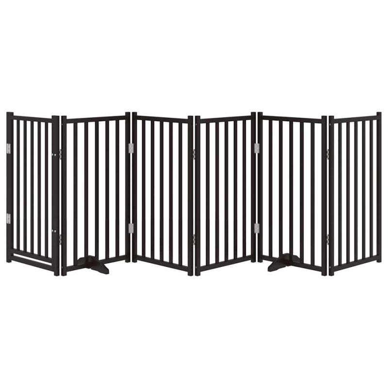 Сгъваема преграда за кучета с врата 6 панела 300 см Масивна ела