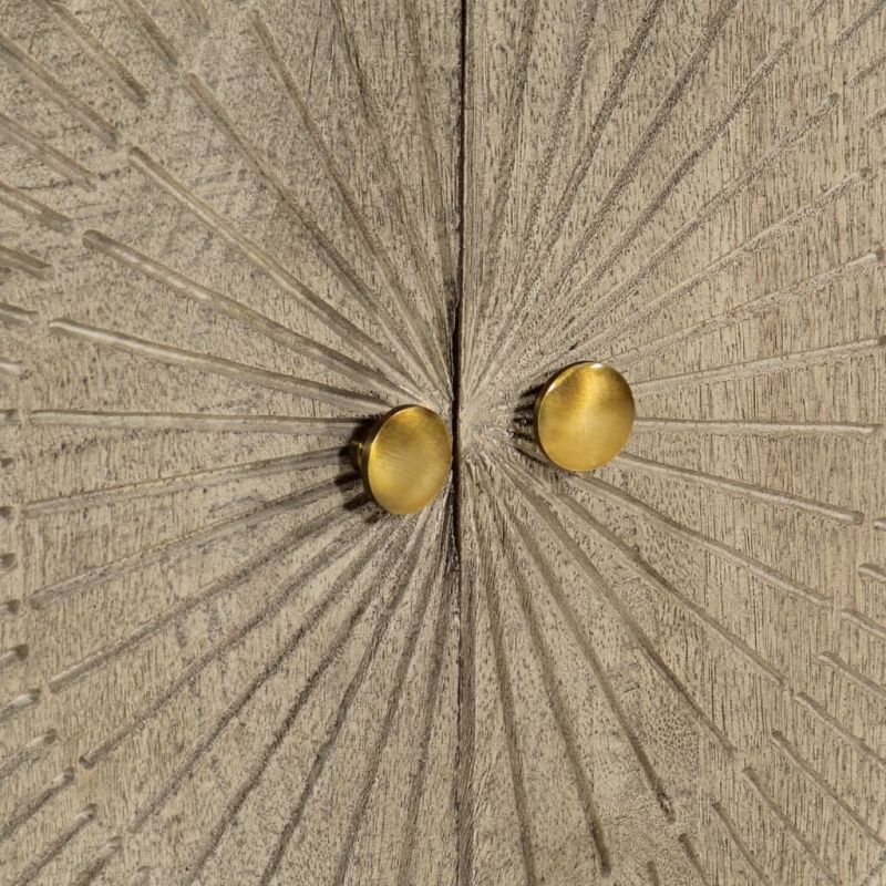 Този дървен бюфет ще бъде практично и декоративно допълнение към декора на вашия дом. Масивна мангова дървесина: Масивната дървесина от манго е здрава тропическа дървесина, от която се произвеждат здрави мебели. Красивите ѝ дървесни шарки правят всяка мебел малко по-различна от следващите. Достатъчно място за съхранение: Шкафът за съхранение предлага удобно място за съхранение, за да държите нещата организирани и леснодостъпни. Стабилен плот: Горната част на бюфетния шкаф е идеална за излагане на вашите декоративни предмети, рамки за картини и саксийни растения. Здрави крака: Железните крака допринасят за здравината и стабилността на спалната мебел. Внимание:За да предотвратите преобръщане, този продукт трябва да се използва с предоставеното устройство за закрепване на стена.