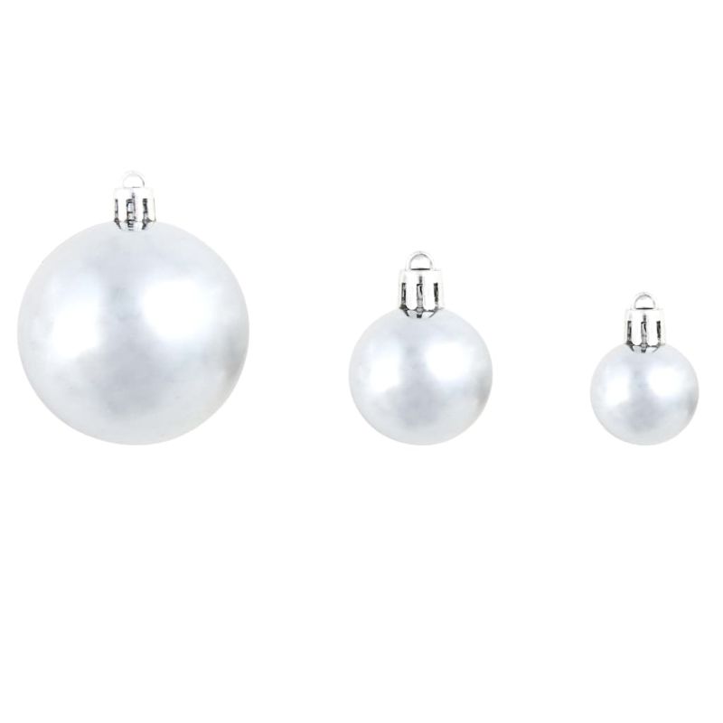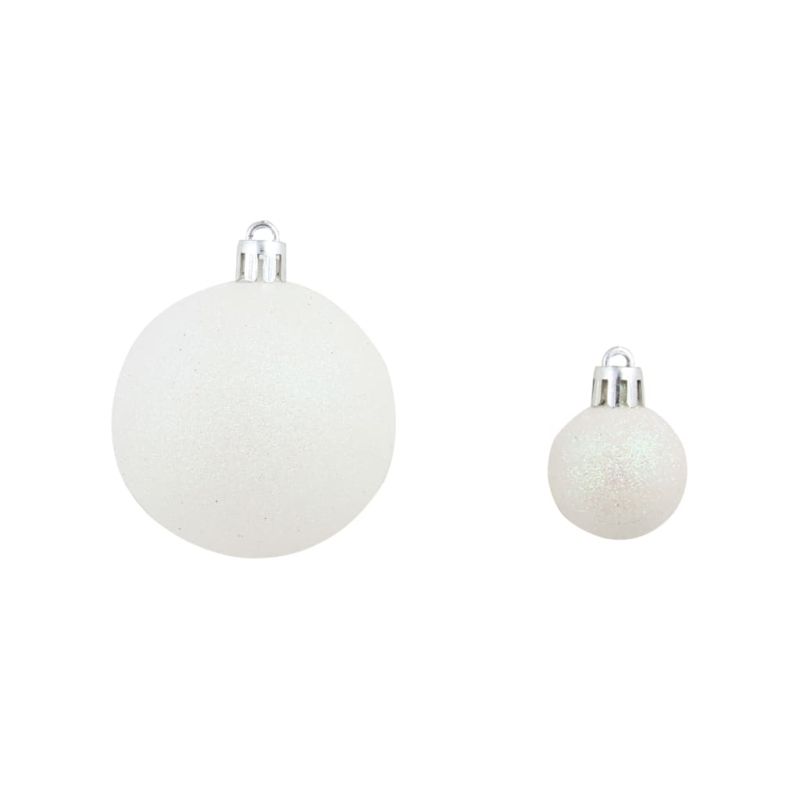 Комплект коледни топки от 100 части, 3/4/6 см, бели/сребро