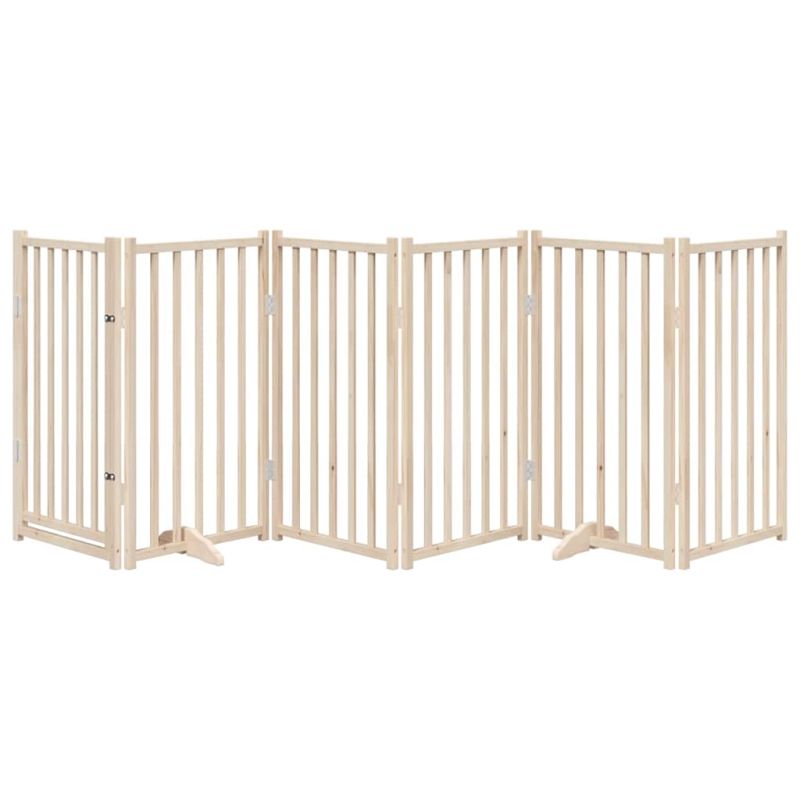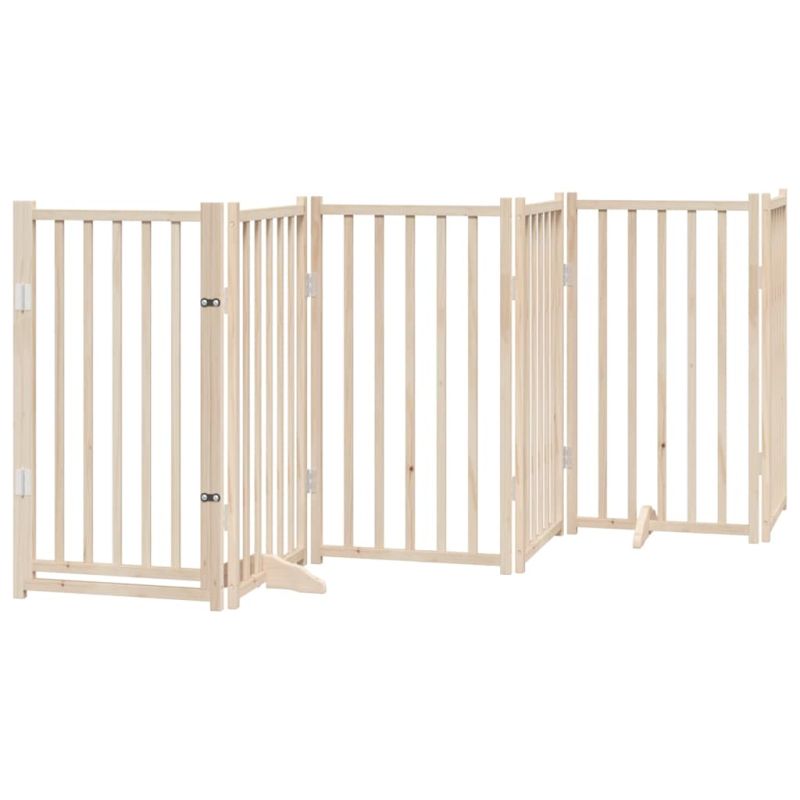Кучешка порта с врата, сгъваема, 6 панела, 300 см, масивна дървесина, ела