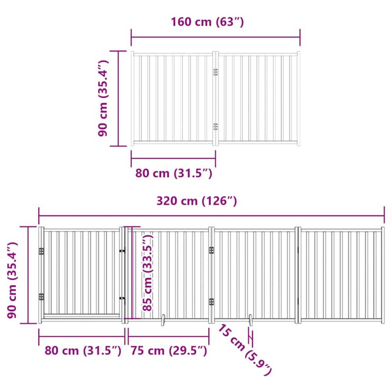 Преградата за кучета държи вашия домашен любимец в определена зона за движение, което може да го предпази и да предотврати безпокойството ви. Издръжлив материал: Преградата за кучета е изработена от тополова дървесина с боя на водна основа, което я прави издръжлива, дълготрайна и лесна за почистване. Лесна за използване: Преградата за кучета не изисква монтаж или пробиване, като така не уврежда дома ви. Тази преграда за кучета може да се сгъва напълно, когато е без крачета, което я прави лесна за пренасяне и съхранение в гардероба или на друго място. Практичен дизайн: Преградата за кучета е снабдена с две здрави крачета, които осигуряват стабилност и позволяват лесно регулиране. Освен това тя включва врата панел и е оборудвана с ключалки, което осигурява по-голяма сигурност и удобство както за вас, така и за вашите домашни любимци. Множество приложения: Тази преграда за кучета може ефективно да попречи на домашните ви любимци да я прескочат и да преминат през нея. Ето защо тя е идеална за обезопасяване на домашните ви любимци във всекидневната, кухнята, на стълбището и на вратата.