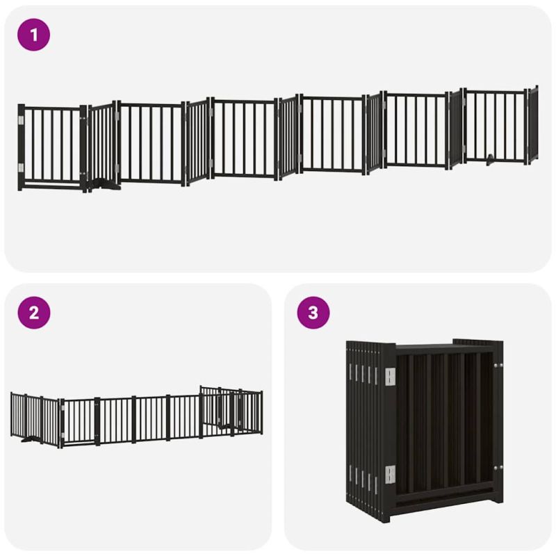 Сгъваема преграда за куче с врата 12 панела черна 600 см топола