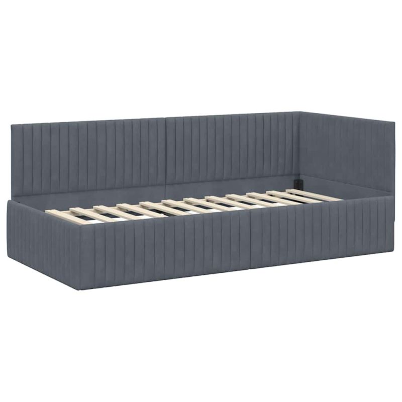Ъглова рамка за легло с таблото Тъмен сив 90 см x 190 см Кадифе