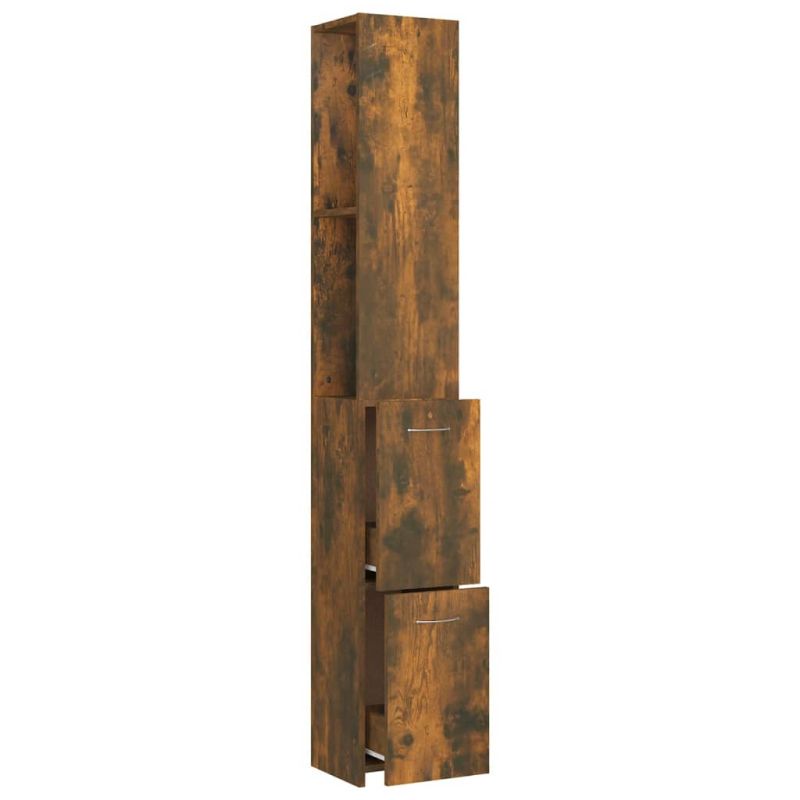 Шкаф за баня, опушен дъб, 25x26,5x170 см, инженерно дърво