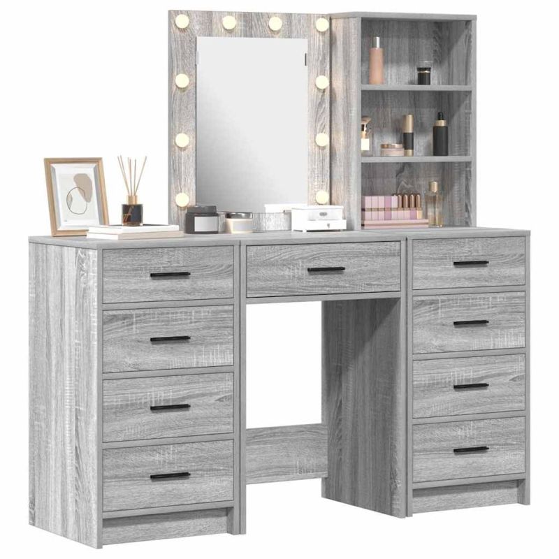 Тоалетка с чекмедже 3 pcs Сив 40 x 41 x 135 см Инженерно дърво
