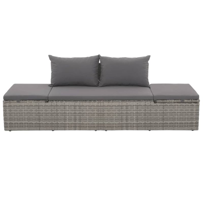 Градинско лаундж легло с възглавници, полиратан, сив