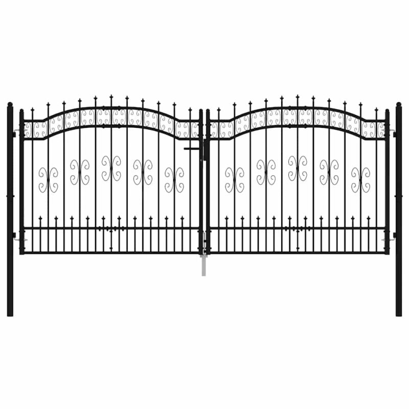 Оградна порта с капак тип „копие“, черна, 305x125 см, прахово боядисана стомана