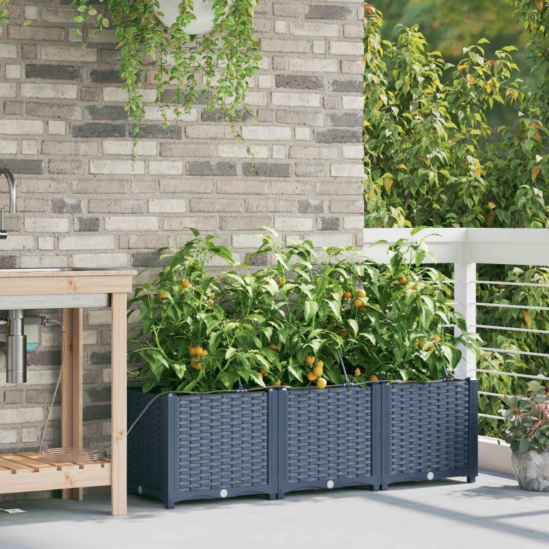 Градинска саксия 3 pcs Сив 120 x 40 x 37,5 см Пластмаса