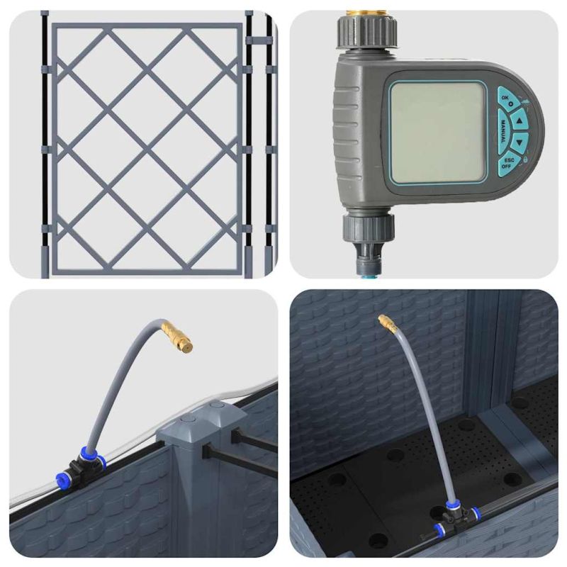 Този градински саксия с напоителна система е съвременно решение, проектирано за външни ентусиасти. Неговата елегантна правоъгълна форма, съчетана с текстуриран плетен модел, добавя съвременен акцент към вашата градина или тераса. Идеален за засаждане на разнообразна флора, този саксия предлага значителна, естетично привлекателна основа за вашите градинарски амбиции. Той безпроблемно се слива с всяка градинска декорация, предоставяйки функционален и стилен вариант за домашните градинари. Саксията е перфектна за тези, които искат да обогатят своето открито пространство с буйна зеленина, обогатена от иновативна напоителна система, която насърчава здравословния растеж на растенията. Неговият повдигнат дизайн предлага повишена sophistication, докато осигурява практическа полезност, превръщайки този продукт в задължителна добавка за градинарските запалянковци. Материална конструкция: Градинският саксия е изработен от UV-устойчива стомана, осигуряваща издръжливост и устойчивост на метеорологични вариации. Този избор на материал предлага здрава защита, подходящо устойчива на силно слънчево лъчение и сезонни промени, запазвайки вашите растения живи през цялата година, без да компрометира структурата на саксията., Вградена напоителна система: Снабдена с напреднала напоителна система, този градински саксия премахва несигурността относно поливането. Използвайки вградените канали, той ефективно разпределя водата директно до корените на растенията, осигурявайки им адекватна влага, като същевременно намалява загубата на вода и поддържа по-здравословен растеж., Съвременен дизайн: С демонстриран модерен плетен модел, елегантната простота на този саксия отговаря на съвременната естетика. Неговото неотразяващо матово покритие добавя префинено излъчване, което му позволява безпроблемно да се интегрира в разнообразни открити настройки, докато въплъщава съвременен стил с изчистени, ненатрапчиви линии., Универсална употреба: Идеален за външно поставяне, този саксия служи както за декорация, така и за практическа употреба. Просторната му вътрешност приема различни растителни видове, от буйни папрати до ярки цветя, правейки го подходящ за сезонни преходи или целогодишна употреба, осигурявайки отличен опит при засаждане за хобисти и опитни градинари., Грижа и поддръжка: За да поддържате изящния му вид, поставете този саксия на стабилно място и избягвайте излагането му на пряка слънчева светлина за дълги периоди. Поставяйте редовно на суха кърпа, осигурявайки сигурни съединения по време на сглобяване, което гарантира стабилност и естетична стойност с времето. Този продукт не трябва да се изхвърля заедно с други битови отпадъци в Европейския съюз. Поради примесите в чешмяната вода в свързващите части има филтри от неръждаема стомана, които трябва да се почистват своевременно, за да се избегне запушване. Този продукт не е против замръзване, под 1 ℃, моля, извадете и върнете обратно стаята, вътрешната вода се излива, за да се съхранява добро замръзване пукнатина не е в обхвата на гаранцията.
