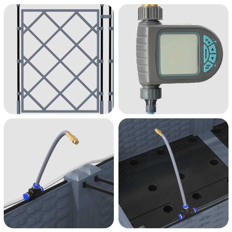 Този градински саксия с напоителна система е съвременно решение, проектирано за външни ентусиасти. Неговата елегантна правоъгълна форма, съчетана с текстуриран плетен модел, добавя съвременен акцент към вашата градина или тераса. Идеален за засаждане на разнообразна флора, този саксия предлага значителна, естетично привлекателна основа за вашите градинарски амбиции. Той безпроблемно се слива с всяка градинска декорация, предоставяйки функционален и стилен вариант за домашните градинари. Саксията е перфектна за тези, които искат да обогатят своето открито пространство с буйна зеленина, обогатена от иновативна напоителна система, която насърчава здравословния растеж на растенията. Неговият повдигнат дизайн предлага повишена sophistication, докато осигурява практическа полезност, превръщайки този продукт в задължителна добавка за градинарските запалянковци. Материална конструкция: Градинският саксия е изработен от UV-устойчива стомана, осигуряваща издръжливост и устойчивост на метеорологични вариации. Този избор на материал предлага здрава защита, подходящо устойчива на силно слънчево лъчение и сезонни промени, запазвайки вашите растения живи през цялата година, без да компрометира структурата на саксията., Вградена напоителна система: Снабдена с напреднала напоителна система, този градински саксия премахва несигурността относно поливането. Използвайки вградените канали, той ефективно разпределя водата директно до корените на растенията, осигурявайки им адекватна влага, като същевременно намалява загубата на вода и поддържа по-здравословен растеж., Съвременен дизайн: С демонстриран модерен плетен модел, елегантната простота на този саксия отговаря на съвременната естетика. Неговото неотразяващо матово покритие добавя префинено излъчване, което му позволява безпроблемно да се интегрира в разнообразни открити настройки, докато въплъщава съвременен стил с изчистени, ненатрапчиви линии., Универсална употреба: Идеален за външно поставяне, този саксия служи както за декорация, така и за практическа употреба. Просторната му вътрешност приема различни растителни видове, от буйни папрати до ярки цветя, правейки го подходящ за сезонни преходи или целогодишна употреба, осигурявайки отличен опит при засаждане за хобисти и опитни градинари., Грижа и поддръжка: За да поддържате изящния му вид, поставете този саксия на стабилно място и избягвайте излагането му на пряка слънчева светлина за дълги периоди. Поставяйте редовно на суха кърпа, осигурявайки сигурни съединения по време на сглобяване, което гарантира стабилност и естетична стойност с времето. Този продукт не трябва да се изхвърля заедно с други битови отпадъци в Европейския съюз. Поради примесите в чешмяната вода в свързващите части има филтри от неръждаема стомана, които трябва да се почистват своевременно, за да се избегне запушване. Този продукт не е против замръзване, под 1 ℃, моля, извадете и върнете обратно стаята, вътрешната вода се излива, за да се съхранява добро замръзване пукнатина не е в обхвата на гаранцията.