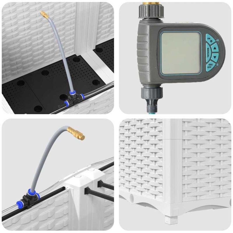 Този градински саксия с напоителна система е съвременно решение, проектирано за външни ентусиасти. Неговата елегантна правоъгълна форма, съчетана с текстуриран плетен модел, добавя съвременен акцент към вашата градина или тераса. Идеален за засаждане на разнообразна флора, този саксия предлага значителна, естетично привлекателна основа за вашите градинарски амбиции. Той безпроблемно се слива с всяка градинска декорация, предоставяйки функционален и стилен вариант за домашните градинари. Саксията е перфектна за тези, които искат да обогатят своето открито пространство с буйна зеленина, обогатена от иновативна напоителна система, която насърчава здравословния растеж на растенията. Неговият повдигнат дизайн предлага повишена sophistication, докато осигурява практическа полезност, превръщайки този продукт в задължителна добавка за градинарските запалянковци. Материална конструкция: Градинският саксия е изработен от UV-устойчива стомана, осигуряваща издръжливост и устойчивост на метеорологични вариации. Този избор на материал предлага здрава защита, подходящо устойчива на силно слънчево лъчение и сезонни промени, запазвайки вашите растения живи през цялата година, без да компрометира структурата на саксията., Вградена напоителна система: Снабдена с напреднала напоителна система, този градински саксия премахва несигурността относно поливането. Използвайки вградените канали, той ефективно разпределя водата директно до корените на растенията, осигурявайки им адекватна влага, като същевременно намалява загубата на вода и поддържа по-здравословен растеж., Съвременен дизайн: С демонстриран модерен плетен модел, елегантната простота на този саксия отговаря на съвременната естетика. Неговото неотразяващо матово покритие добавя префинено излъчване, което му позволява безпроблемно да се интегрира в разнообразни открити настройки, докато въплъщава съвременен стил с изчистени, ненатрапчиви линии., Универсална употреба: Идеален за външно поставяне, този саксия служи както за декорация, така и за практическа употреба. Просторната му вътрешност приема различни растителни видове, от буйни папрати до ярки цветя, правейки го подходящ за сезонни преходи или целогодишна употреба, осигурявайки отличен опит при засаждане за хобисти и опитни градинари., Грижа и поддръжка: За да поддържате изящния му вид, поставете този саксия на стабилно място и избягвайте излагането му на пряка слънчева светлина за дълги периоди. Поставяйте редовно на суха кърпа, осигурявайки сигурни съединения по време на сглобяване, което гарантира стабилност и естетична стойност с времето. Този продукт не трябва да се изхвърля заедно с други битови отпадъци в Европейския съюз. Поради примесите в чешмяната вода в свързващите части има филтри от неръждаема стомана, които трябва да се почистват своевременно, за да се избегне запушване. Този продукт не е против замръзване, под 1 ℃, моля, извадете и върнете обратно стаята, вътрешната вода се излива, за да се съхранява добро замръзване пукнатина не е в обхвата на гаранцията.