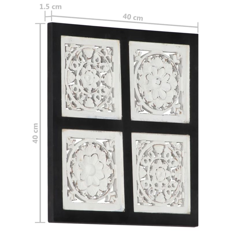 Ръчно резбован стенен панел, МДФ, 40x40x1,5 см, черно и бяло