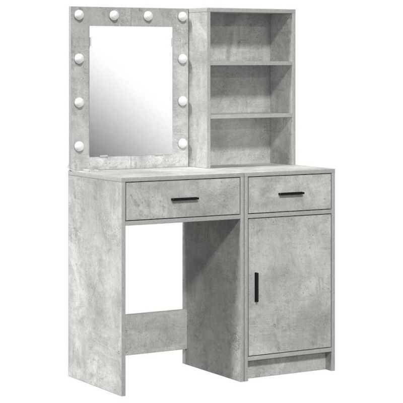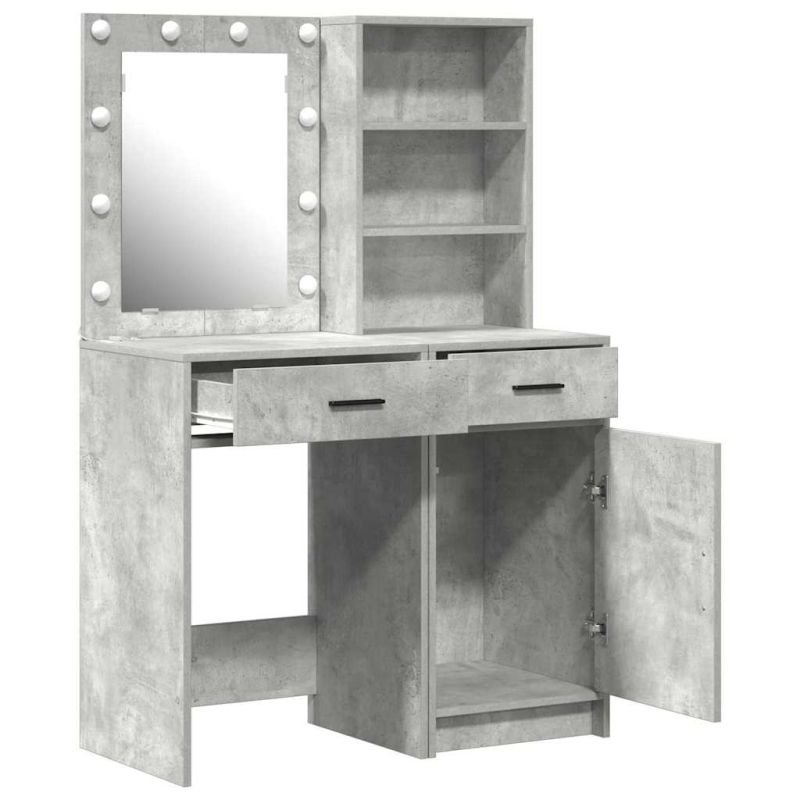 Комплектът LED тоалетка съчетава модерна елегантност с практичност, което го прави перфектен за стилни спални. Гладката повърхност от инженерен дървен материал изглежда великолепно и издържа на ежедневна употреба. Проектиран за ценителите на минимализма, той внася спокойствие и финес в пространството. Гладкото покритие добавя луксозно усещане, правейки времето за грим удобно и стилно. Изработен от инженерна дървесина: Този комплект е здрав и стилен. Гладката повърхност и текстурата му са устойчиви на ежедневна употреба и изглеждат страхотно в модерното декор. Лесен за поддържане, ще демонстрира добрия ви вкус. Функционални LED огледала: Огледалото с вградени LED светлини осигурява отлично осветление, правейки гримирането лесно. Плоската повърхност е идеална за грим, а сензорният ключ улеснява всичко. Удобни опции за съхранение: С чекмеджета и рафтове, този комплект предлага много място за вашите красоти и дреболии. Всичко е проектирано за лесен достъп, така че всичко да е подредено и организирано. Модерен дизайн: Модерният стил предлага чисти линии и опростен вид, перфектен за всяка спалня. Квадратните крака осигуряват стабилна основа. Лесна поддръжка: За да изглежда масата ви добре, просто я избършете с влажна кърпа. Лесната поддръжка означава, че можете да се радвате на красотата й с години, без притеснения за износване. Моля, обърнете внимание, че трябва да използвате само сертифициран вход DC 5V. По-високото напрежение може да доведе до прегряване и да повреди устройството, както и до потенциален риск от прегряване и пожар. Не свързвайте този продукт към захранване, различно от описаното в ръководството, на табелката с името или изрично препоръчано от vidaXL. Този уред не трябва да се използва от деца под 15 години, както и от лица с намалени физически, сетивни или умствени способности или с липса на опит и познания относно използването на електронни уреди. Електричеството е опасно. Повредите и неправилният монтаж, употреба или промяна (подмяна на отделни компоненти) могат да доведат до повреда на уреда , което да доведе до токов удар и опасност за потребителя. Не използвайте този продукт във взривоопасна атмосфера, като например при наличие на запалими течности, газове и прах, или при температура над 50 градуса по Целзий или повече. Не включвайте продукта, ако свързващият кабел или захранването са видимо повредени. Ако външният гъвкав кабел или захранващ кабел на това осветително тяло е повреден, той трябва да бъде заменен изключително от производителя или негов сервизен агент, или от подобно квалифицирано лице, за да се избегне опасност. Изключете захранването по време на монтажа и поддръжката. Уверете се, че крушките са изстинали. Светлинният източник на това осветително тяло не може да се заменя; когато светлинният източник достигне края на експлоатационния си срок, цялото осветително тяло трябва да се замени. Само за употреба на закрито, не използвайте този продукт на открито.