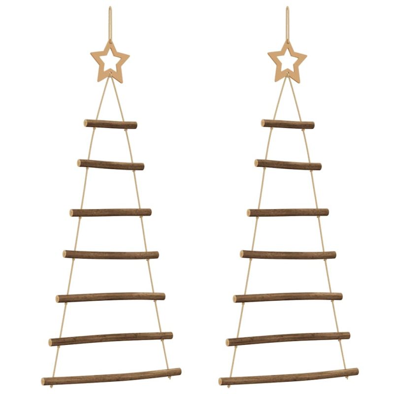 Висящи коледни елхи със звезди на върха, 2 бр., 42x90 см, естествени клони