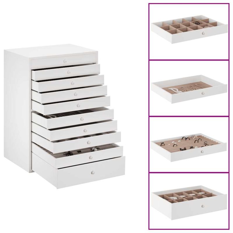 Кутия за бижута 10-слойна с държачи за часовници, бяла, 29x20,5x40,5 см