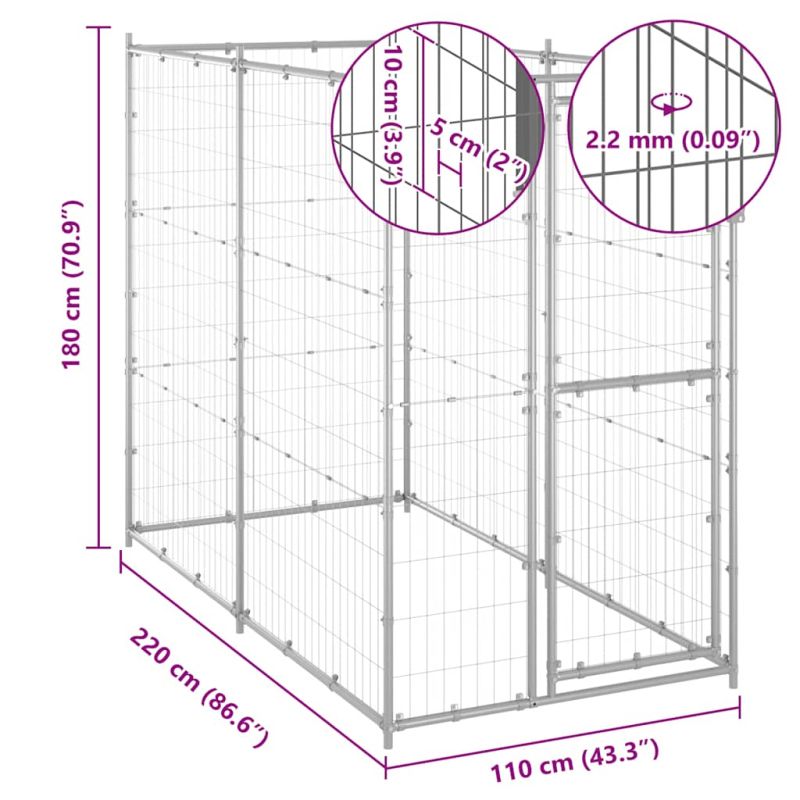 Външна клетка за куче, поцинкована стомана, 110x220x180 см