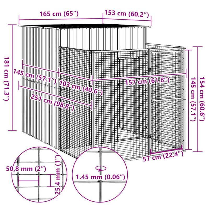 Кучешка къща с волиера, антрацит, 165x251x181 см, стомана