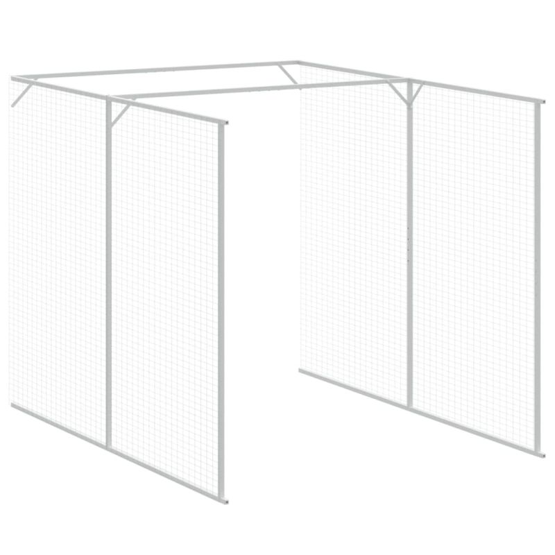Осигурете безопасност и комфорт на вашите космати приятели с тази къщичка за кучета с ограждаща площадка. Многофункционална употреба: В комбинация с удължената ограждаща площадка, многофункционалната къщичка за кучета осигурява достатъчно място за вашия домашен любимец. Тя предлага множество приложения: игра, упражнения, обучение или просто за безопасност на вашето кученце. Това ще бъде перфектният рай за игра за вашите космати приятели!Издръжлива конструкция: Благодарение на здравата и издръжлива конструкция от поцинкована стомана, кучешката клетка е издръжлива и построена за дълготрайност.Мрежест дизайн: Мрежестият дизайн на удължената част помага за предотвратяване на пакости и неочаквани инциденти, като същевременно позволява вентилация.Практичен покрив: Покривът на клетката за кучета предпазва кученцето от слънце, дъжд, сняг и други метеорологични условия.Удобен достъп: Има вход към къщата за животни и врата с резе на удължената част, което улеснява влизането и излизането.Полезно е да знаете:За да предотвратите повреди от обилно натрупване на сняг, препоръчваме редовно да почиствате покрива през зимата.