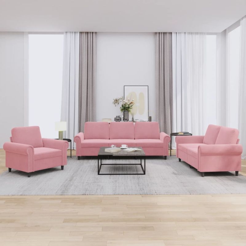 Комплект дивани от 3 части с възглавници, розов, кадифе