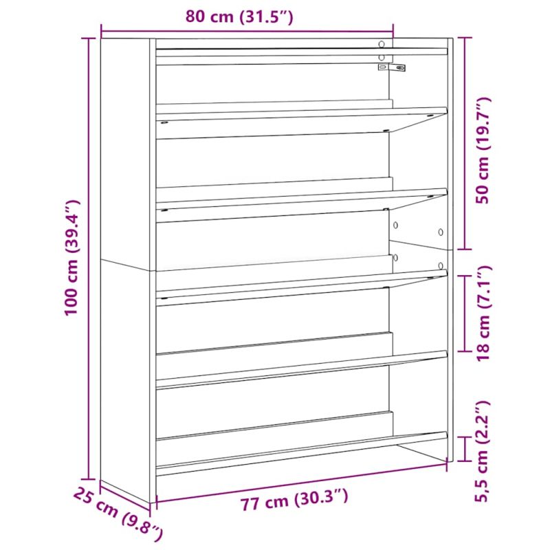 Етажерка за обувки, опушен дъб, 80x25x100 см, инженерно дърво