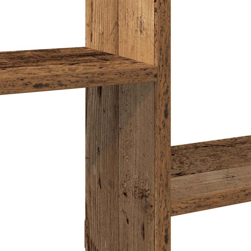 Стенен кубичен рафт, 5 отделения, старо дърво, инженерно дърво