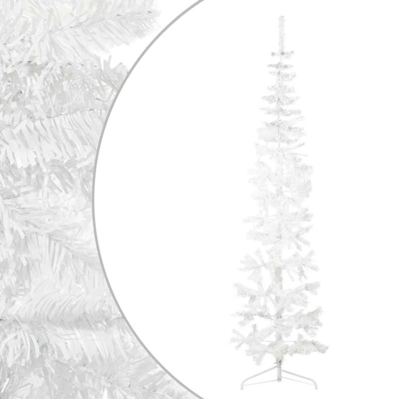 Тънка изкуствена половин коледна елха със стойка бяла 240 см
