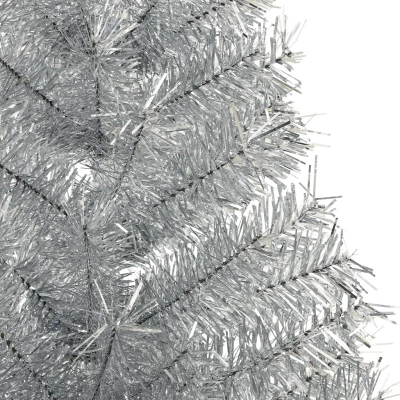 Изкуствена половин коледна елха със стойка, сребро, 180 см, PET