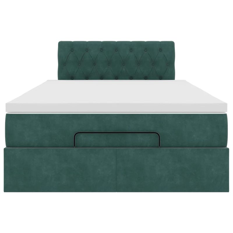 Османска легло с матрак и LED, тъмнозелено, 120x190 см, кадифе