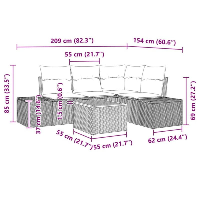 Градински Софа Комплект с възглавница 5 pcs Сив Полиратан