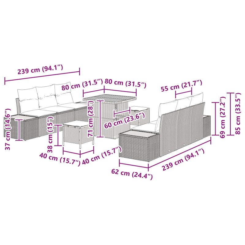 Този градински диван е идеалният аксесоар за отдих на открито. Със стилния си модерен вид, той прекрасно допълва всяка градина или тераса, предлагайки comfort и съвременна естетика. Дизайнът му е с чисти линии и функционалност, което го прави подходящ за всякакви открити пространства, където искат стил и полезност. Материали: Изработен от висококачествен полиратан, комплектът осигурява дълготрайност и стил. Прахово боядисаната стоманена рамка е устойчива и запазва структурата си на открито. Масивната акациева дървесина добавя естествено богат цвят и е достатъчно здрава, за да устои на времето. Включени компоненти: Комплектът има удобни полиестерни възглавници, запълнени с пяна за допълнителен комфорт. Сваляемите калъфки са с удобен цип за лесна поддръжка. Рамките от полиратан придават стилен вид и увеличават удобството при дълга употреба. Характеристики / Функция / Дизайн: Модулният дизайн позволява гъвкава конфигурация, давайки свобода да подреждате според пространството и повода. Плоските подлакътници добавят изисканост, а лесната настройка осигурява удобство без нужда от инструменти. Препоръчителни приложения: Идеален за градина и тераса, този диван е пригоден за социални събирания на открито или спокойни вечери. Стилният му дизайн лесно се вписва в различни декори, являва се адаптивен както за неформални градински събирания, така и за елегантни вечери. Поддръжка: За по-голяма дълговечност, покривайте го, когато не го ползвате и почиствайте с влажна кърпа. Лесната поддръжка помага да запазите визията и функционалността на комплекта, осигурявайки комфорт години наред.