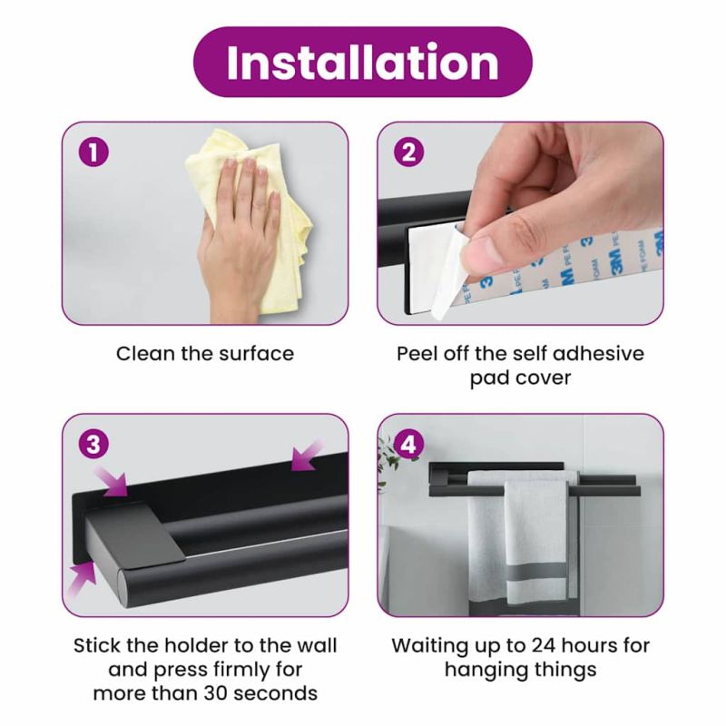 Держач за кърпи Черно 40 x 9 x 4 см Неръждаема стомана