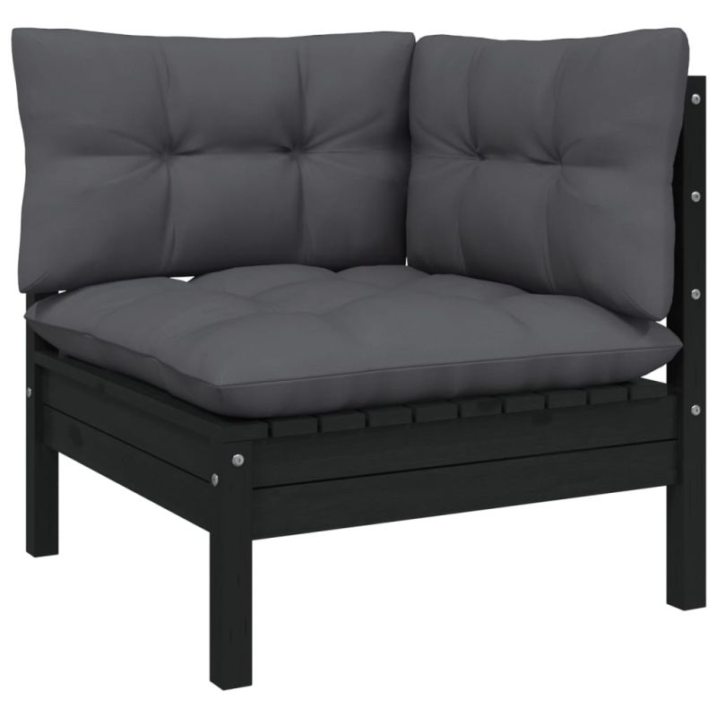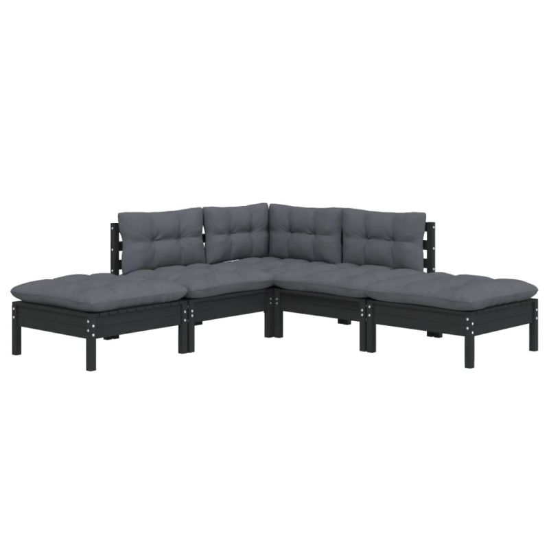 Градински лаундж комплект с възглавници, 5 части, черен масив