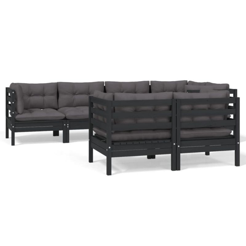 Градински лаундж комплект с възглавници 7 части черен бор масив
