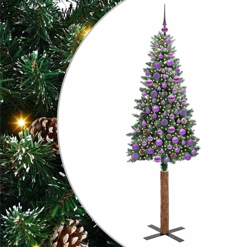 Тясно коледно дърво Зелен 180 cm ПВЦ и масивно борово дърво