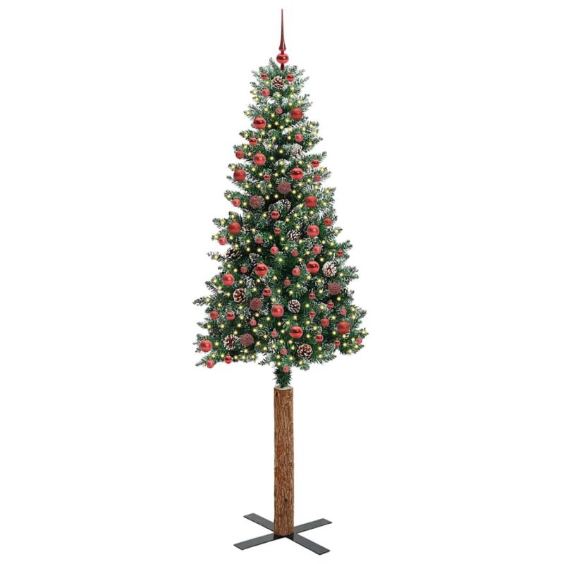Тясно коледно дърво Зелен 210 cm ПВЦ и масивно борово дърво