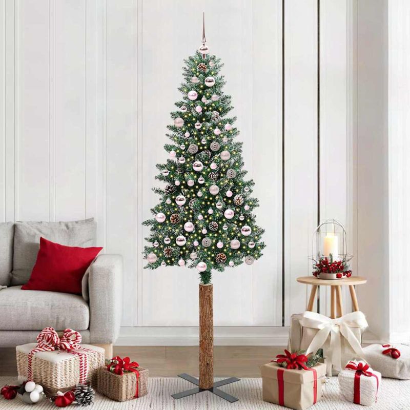Тясно коледно дърво Зелен 210 cm ПВЦ и масивно борово дърво