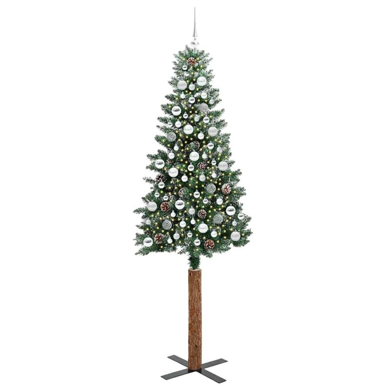 Тясно коледно дърво Зелен 210 cm ПВЦ и масивно борово дърво