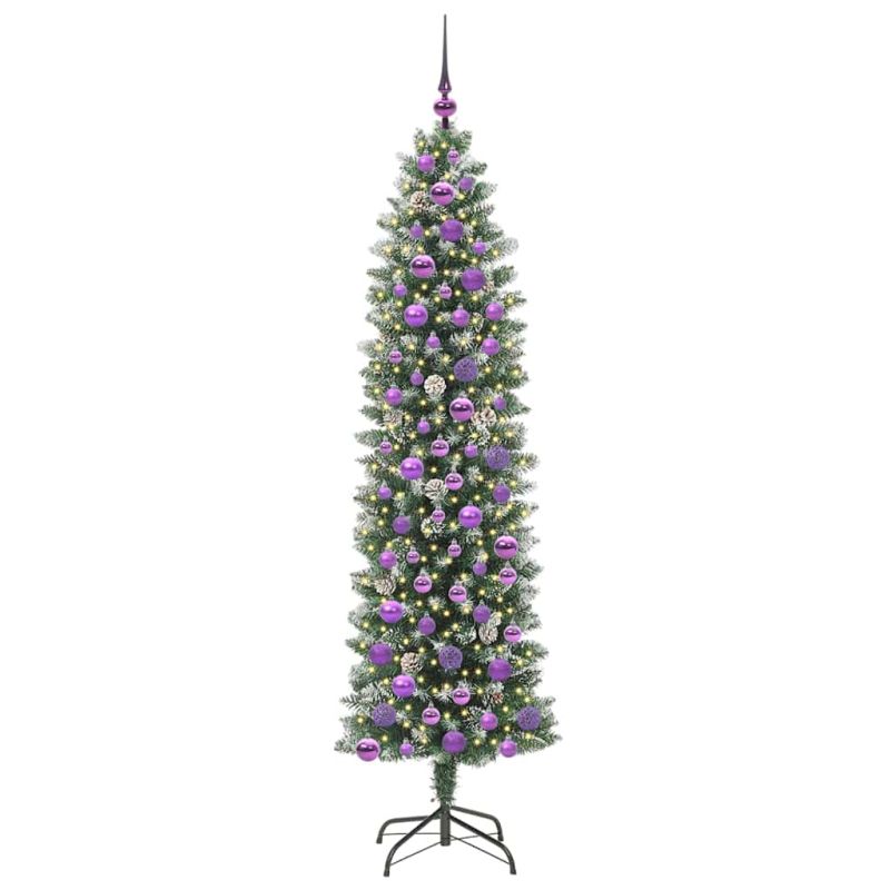 Изкуствено Тънко Коледно Дърво с поставка Зелен и бял 180 cm