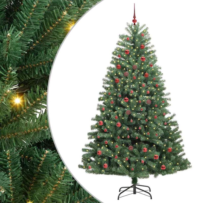 Изкуствено коледно дърво с хингед Зелен 210 cm PVC и метал