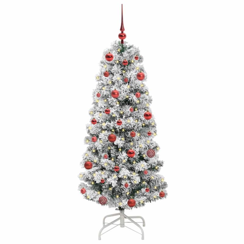 Изкуствено коледно дърво с хингед с поставка Зелен и бял 150 cm