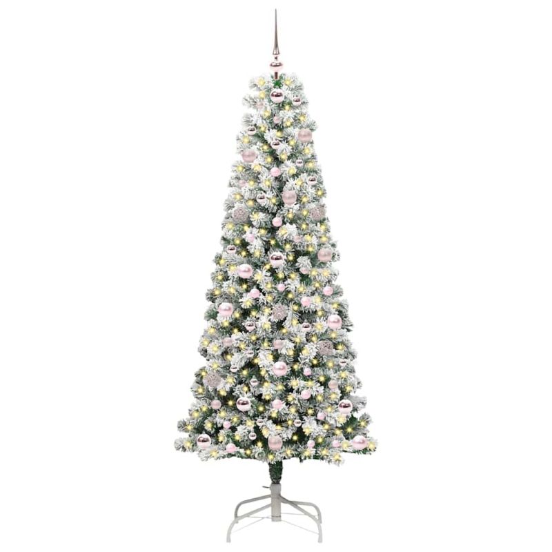 Изкуствено коледно дърво с хингед с поставка Зелен и бял 180 cm