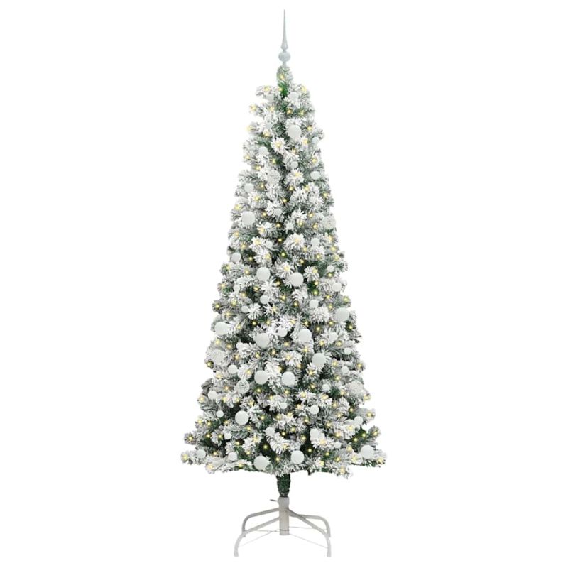 Изкуствено коледно дърво с хингед с поставка Зелен и бял 210 cm