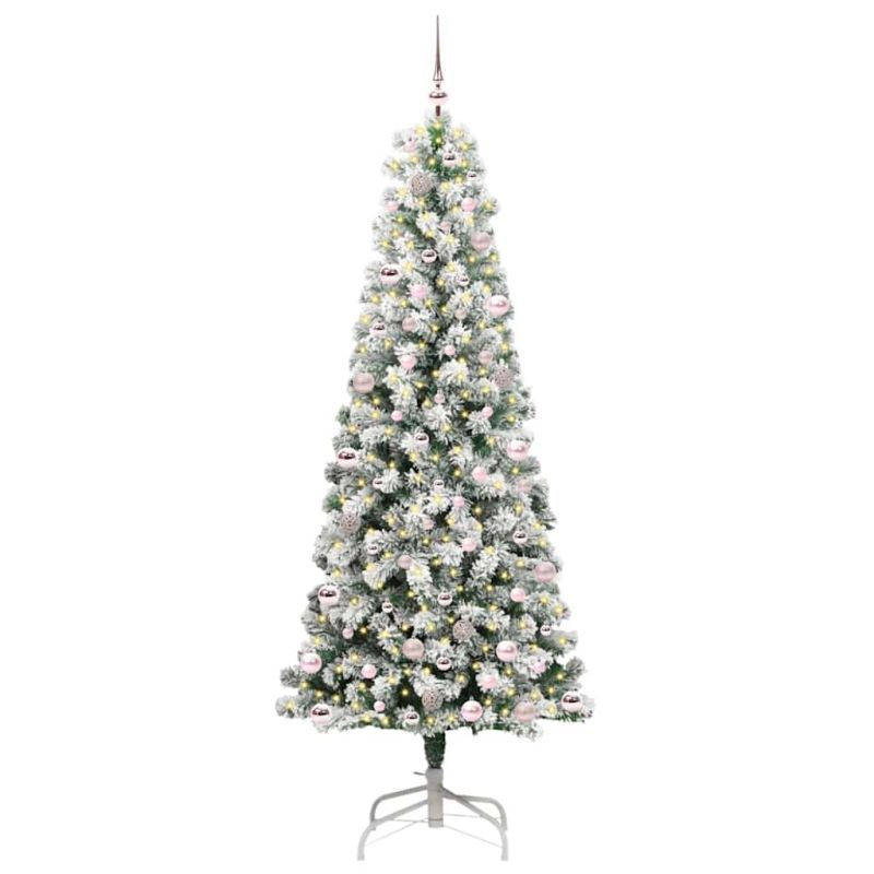 Изкуствено коледно дърво с хингед с поставка Зелен и бял 240 cm